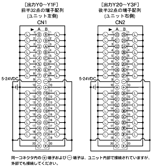 法人向けトップ > 電子デバイス・産業用機器 > 制御機器トップ > サービス・サポート > FA技術サポート > 配線時サポート > ピン配列・端子配列 > FP2/FP2SH 64点トランジスタ出力ユニット(NPN) 端子配列図