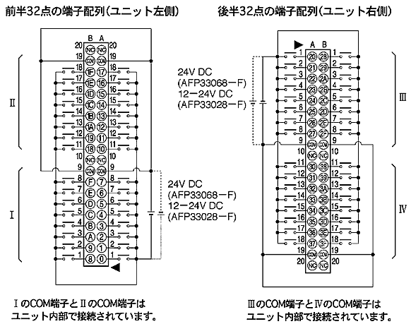IのCOM端子とIIのCOM端子はユニット内部で接続されています。
