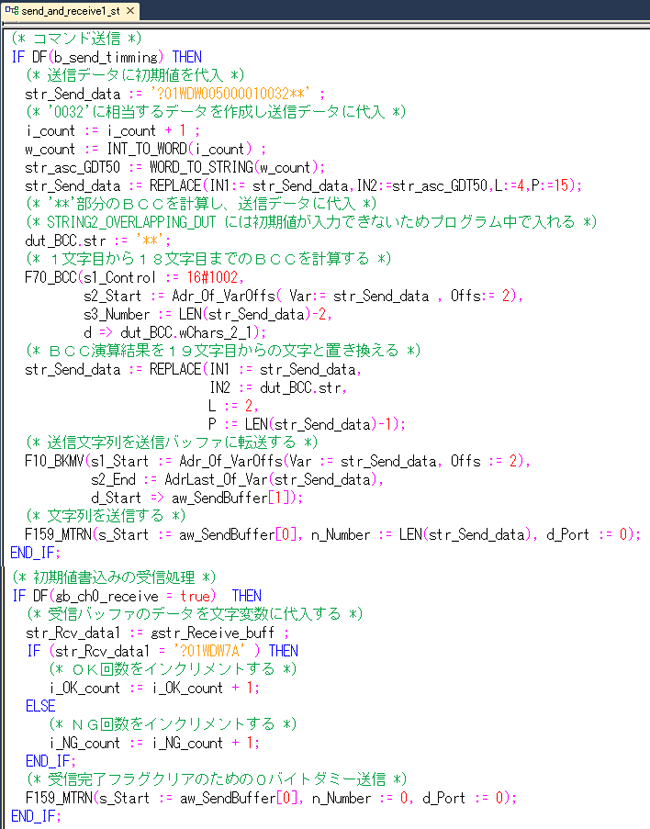FPWIN Proでの送受信プログラム1 (ST:ストラクチャードテキスト)