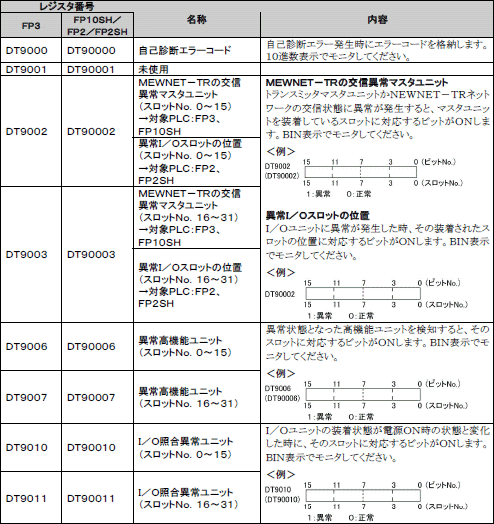 自己診断エラーが発生時に、エラー内容(DT90000~90018)をDT10020~に10回分蓄積します。