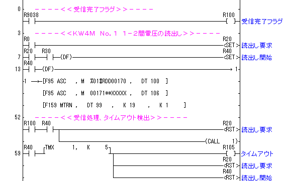 > 周辺機器との接続 No.24 FPΣ-2台のKW4M(エコパワーメーター) 1-2間電圧の読み出し