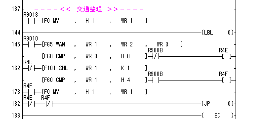 R0をオンするとNo.1の1-2間電圧を読み出しDT200・DT201へ格納します。R1をオンするとNo.2の1-2間電圧を読み出しDT210・DT211へ格納します。R0とR1を同時にオンすると2つの読み出し処理を交互に行います。