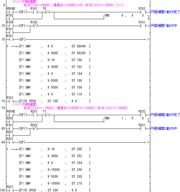 > 位置決め制御 No.24 FPΣ 連続円弧補間 半円2つを描く