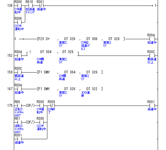 R80, R81がOFFしたタイミングで減速を開始し、初速度となった段階で停止します。