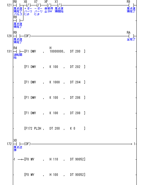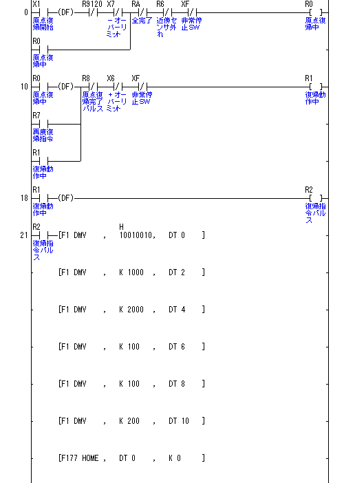 そこで、原点サーチ動作をラダープログラムを組むことで実現しました。