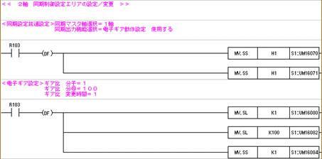 R103をONさせることで、同期設定を実行します。