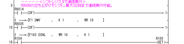 アクセスを行うには、実行可フラグのR9035の状態を確認する必要があります。このプログラムでは、4つの共有メモリアクセスを自動的に切り替えて実行しています。