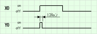 X0をONすると1スキャンだけY0がONします。
