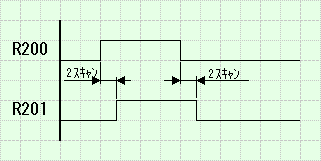 R200のON・OFFタイミングを2スキャン遅らせる。