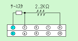 デジタル値=(1024×2.2)/(サーミスタ抵抗値(KΩ)+2.2)-1