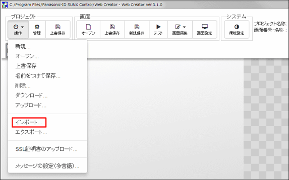 エクスポートしたデータをControl Web Creatorに取り込みます。取り込んだデータはプロジェクトデータや画像等の各種ファイル毎に自動的に所定のフォルダへ格納されます。