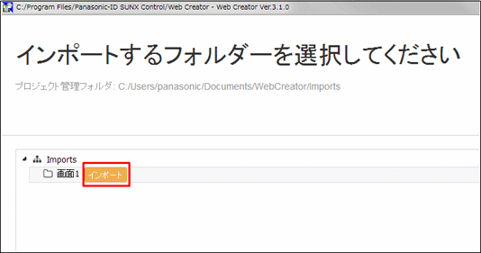 4.Importsフォルダに保存したプロジェクトが表示されます。インポートするフォルダを選択します。